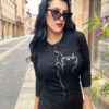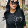 Un cárdigan negro bordado con un gatito que parece trepar por tus botones.