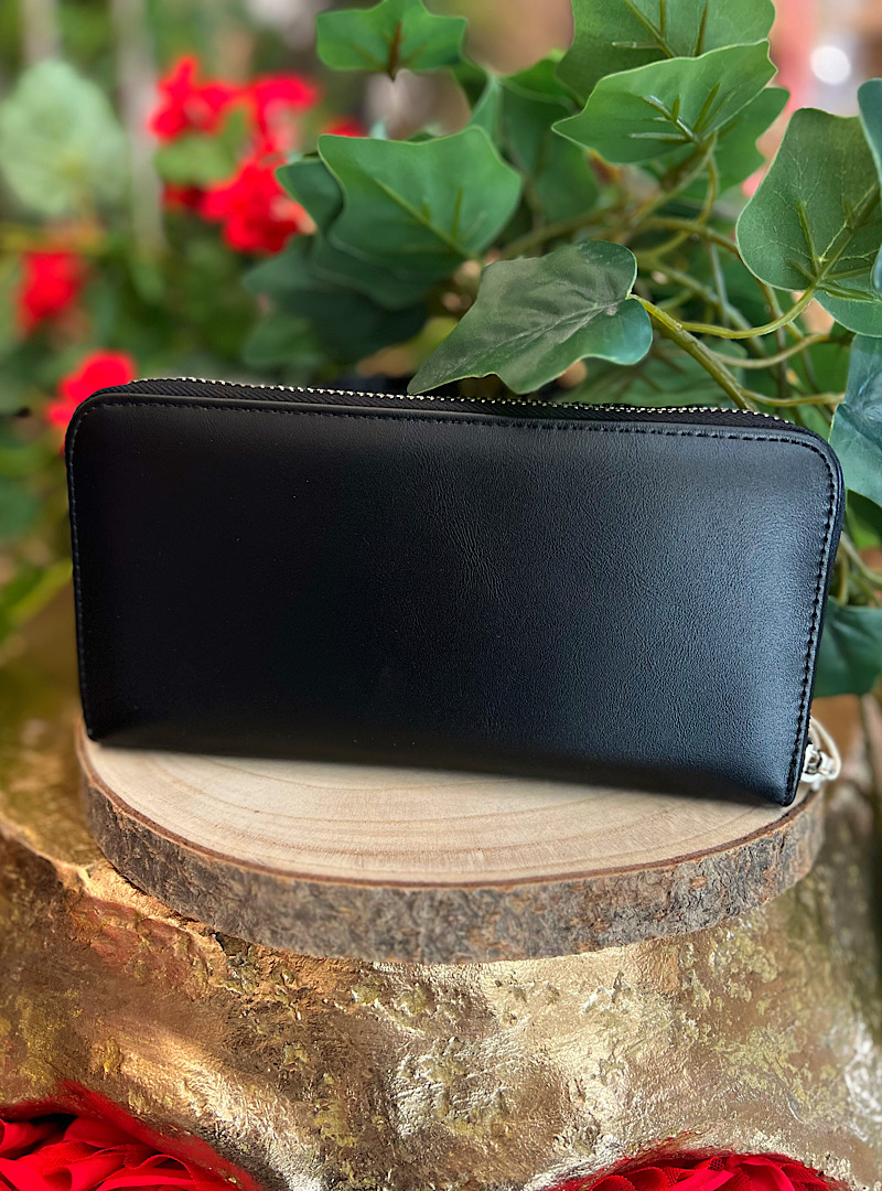 20x10cm tiene compartimentos para tarjetas, billetes y monedas (con cremallera).