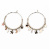 Pendientes de aro de acero con estrellas, rayos y lunas colgantes
