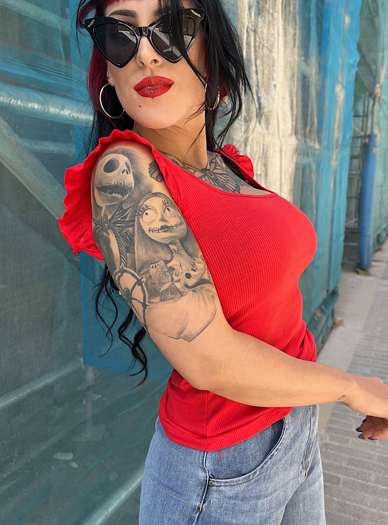 Top canalé VOLANTES ROJO