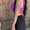 Top encaje de tirante ancho. Elástico y crop. Lleva espuma al pecho.