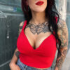 Top con escote y muy elástico. Lleva espuma al pecho y hace forma muy bonita.
